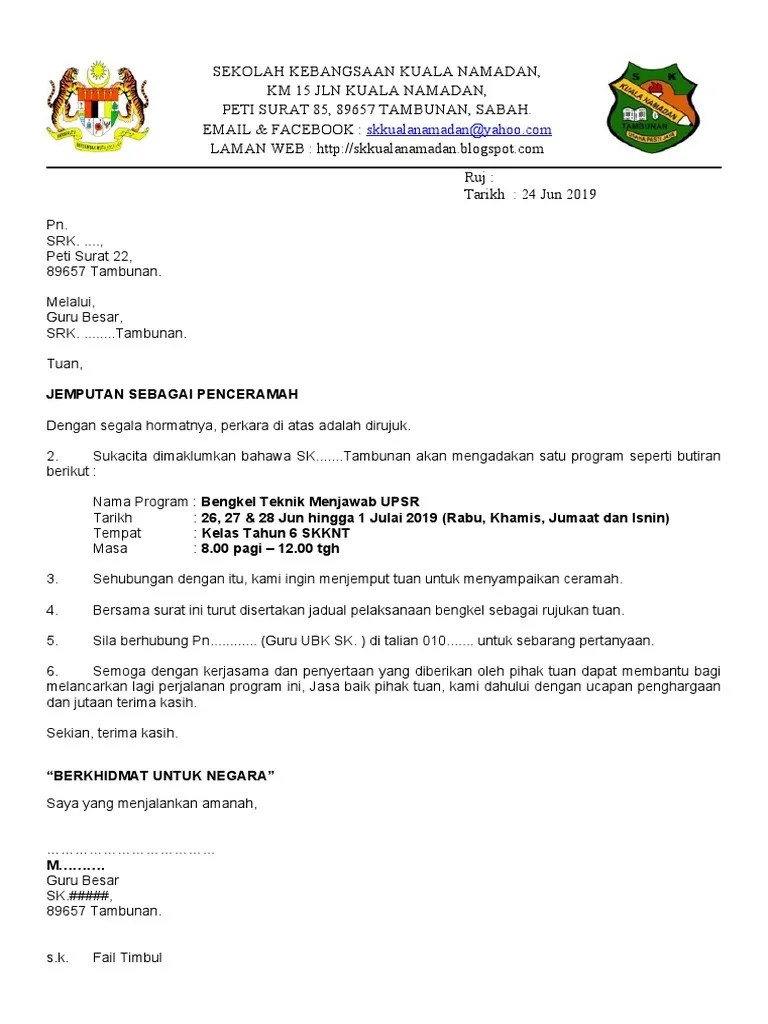 Contoh Surat Jemputan Penceramah : Surat Jemputan Penceramah Pdf
